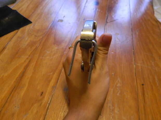 Guantes del capitán Hammer tienen una hebilla en el exterior, pero por desgracia los que tuve en mano eran demasiado grandes, así que tuve que improvisar.