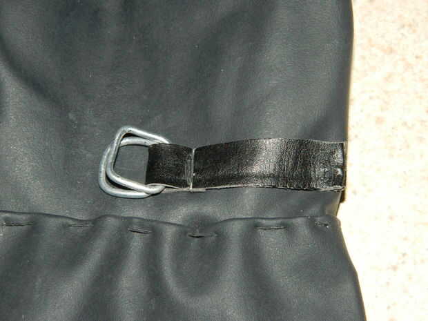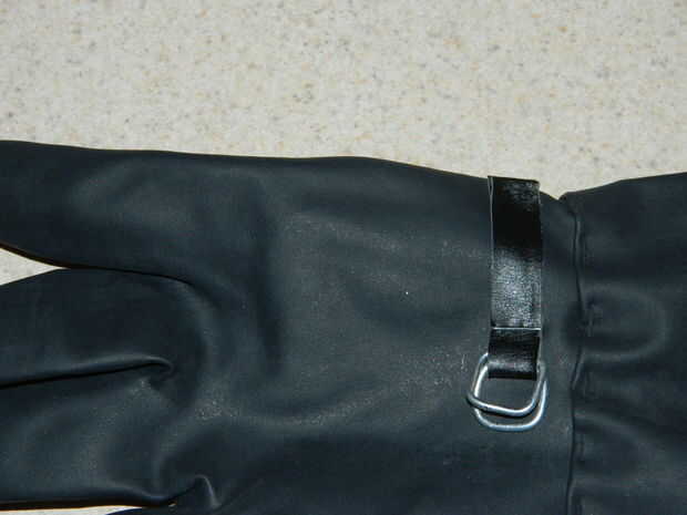 A continuación simplemente coser el extremo de la tela en la parte posterior del guante hasta al lado como usted puede conseguir sin envolver alrededor de la parte delantera. También cosí el extremo abrochado hasta el guante, para evitar aleteo alrededor de demasiado.