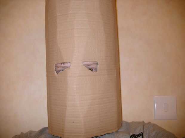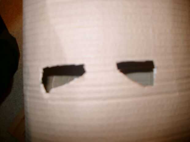 Haga una marca donde sus ojos son y cortan agujeros para los ojos. Simple, ¿no?