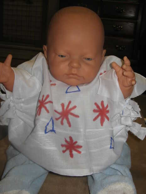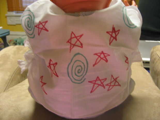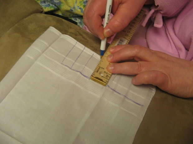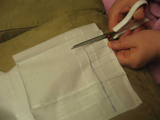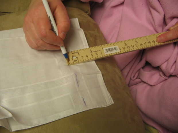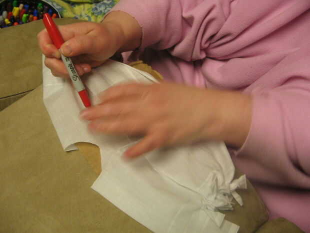 En mi ejemplo estoy utilizando un mans blanco pañuelo y yo decorado después de hecho el ejemplo con "Sharpies". Hice esto porque hasta que se hace es difícil saber dónde poner las decoraciones