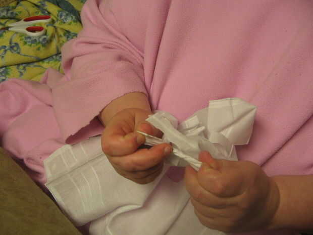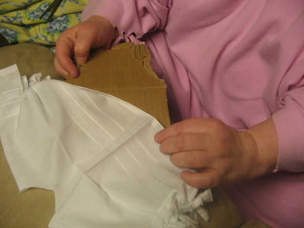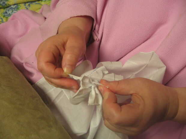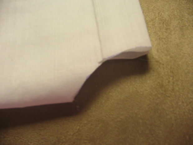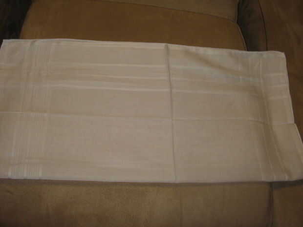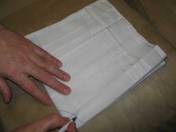 Paso uno: Pone el paño grueso y suave hacia fuera plana sobre una superficie. (Sin imagen)