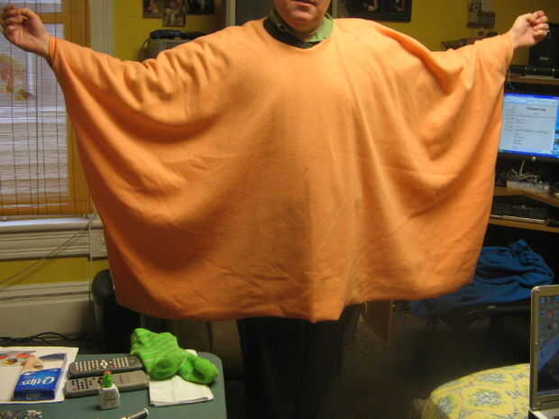 Para ocioso corto: 2 yardas de 48" ancho paño grueso y suave para cada silla. Me imagino que tu por eso pide la misma cantidad de yardas cuando tu haciendo una prenda más corta. Con el 48" material, quería una prenda más ancha así que usé el 48" para la longitud y las 2 yardas para la anchura. Si no quieres tuya tan grande, que menos yardas o cortar una vez que se casa. Básicamente quiere que vaya desde la muñeca a la muñeca con los brazos propagación hacia fuera todo así si 48" lo haré por todos los medios que menos yardas y pero si no, yardas de la distancia entre la muñeca y el 48" para la longitud. Por supuesto usted podría 64" ancho y corte hacia abajo también para la longitud o la anchura.