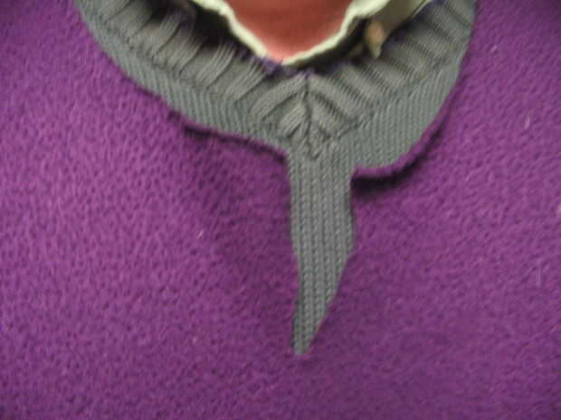 Paso doce: Si necesita volver atrás y cortar el escote más grande recortando alrededor del agujero que lo tienes ya o sólo cortar una hendidura por la parte delantera o trasera.