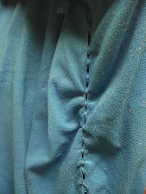 Paso siete Si son cosa tuya, es donde se cose una costura a cada lado, donde ha marcado para la sisa, backstiching en cada extremo para que sea seguro. También corrí mi costura hasta el final en la muñeca en lugar de simplemente correr hacia arriba y la parada.