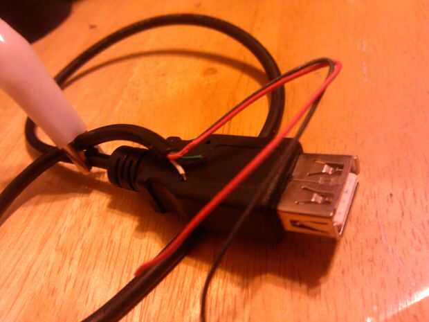 La segunda imagen muestra el cableado del cable USB. El rojo y el negro son obviamente positiva y negativa. No se utilizan los cables verdes y blanco. Los cables verdes y blanco son para transferencia de datos en un contexto de equipo.