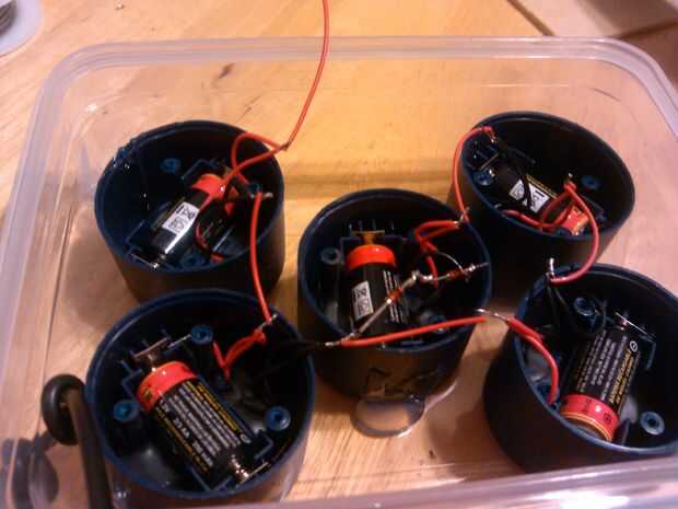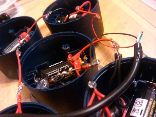 Te darás cuenta que también une los dos diodos zener al lado de la carcasa de la célula de centro. También usé aproximadamente una gota de pegamento por empalme de soldadura después de recortar con cuidado el exceso de cable...