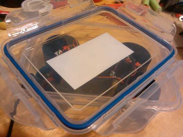 En la parte superior/tapa teórica del envase: voy a pegamento caliente algún tipo de material antideslizante. Mi esperanza es poder configurar esto en un alféizar de la ventana, un salpicadero de un vehículo, una mesa de picnic y sabe que no deslice apagado por cualquier razón.