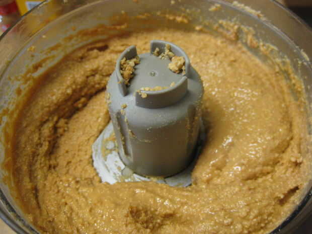Proceso de los cacahuetes para 1-2 minutos, hasta que se convierten en la consistencia de la imagen. El maní debe comenzar para que parezca recién mantequilla de cacahuete de la tierra y los aceites de maní debe ser liberado.