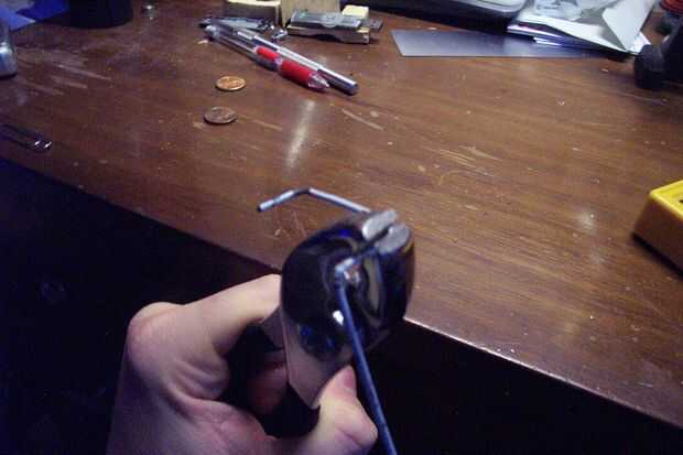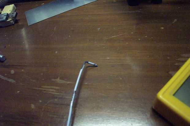 Hacer una pequeña, 90 grados de la curva. Esto envolverá alrededor de la parte frontal del medidor. Mi curva era aproximadamente la anchura de las quijadas de los alicates.