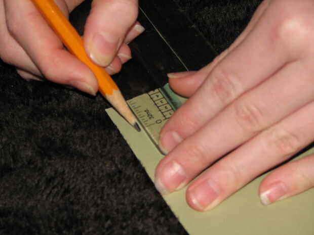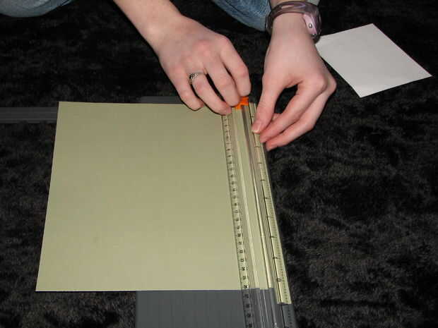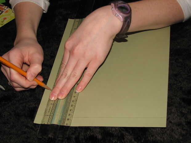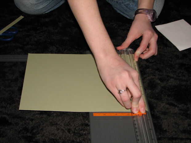 Si usted está usando un cortador de papel necesita cortar in.* 3/4 la longitud de la cartulina para que el papel de preparar con la medida que dice 10 1/4 pulgadas. Eso es cuánto papel se va a terminar. Si utiliza una regla, medir hasta en 3/4 del borde inferior cerca de una esquina y marque con un lápiz. Repita esto cerca del borde opuesto, así que usted puede poner su regla hacia abajo y trazar una línea punto a punto. Corta en esta línea con sus tijeras. A continuación se que necesita cortar un 1/2 pulgadas de la anchura de la cartulina por cualquier medio elija (cortador de papel o regla, lápiz y tijeras). El ancho terminado debe ser de 8 pulgadas.