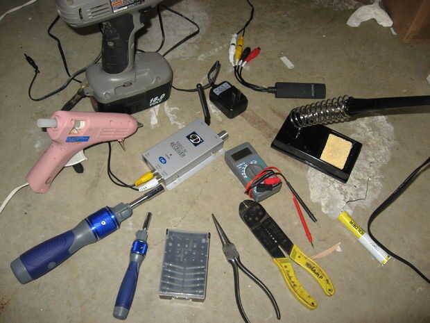 5. cámara, receptor de TV analógica - conecta en cosas así se puede ver dónde está la cámara. Quería ver con mi portátil, así que conseguí a un capturador de video USB. Mina vino con el software en un CD.