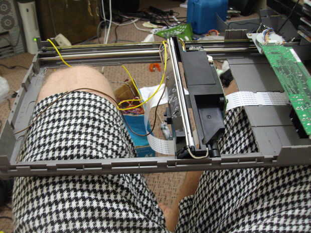 la forma más fácil que encontré para hacer esto era añadir un conmutador a una de las entradas de la PCB en el carro móvil a la c.c. a la CA convertir transformer(small PCB) para la luz del escáner. (esto le da el control para apagar la luz que después de la exploración de registro pero antes de la digitalización de la imagen proyectada.