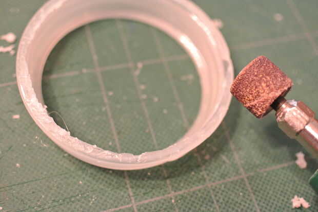 utilicé un accesorio de lijado para quitar las rebabas e incluso hacia fuera del borde.