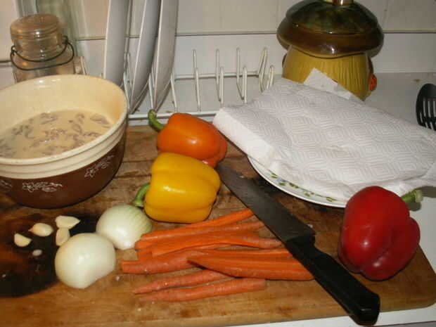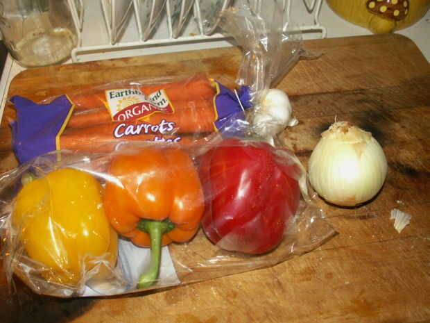usé 3 pimientos una cebolla y 4 zanahorias plus algunos jengibre y ajo