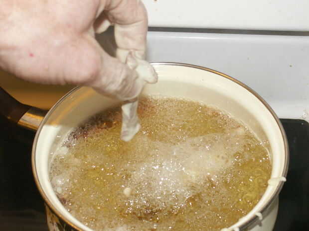 Quitar la pieza y colocar sobre papel absorbente, para drenar el exceso de aceite.