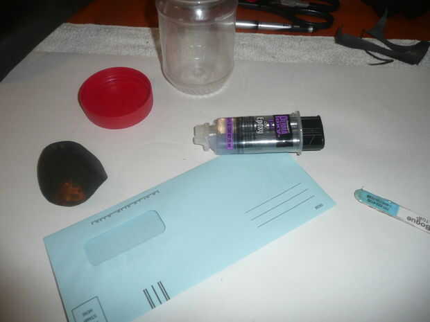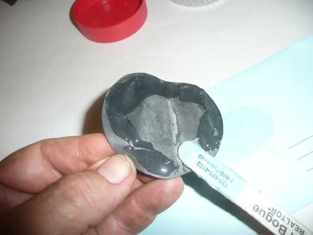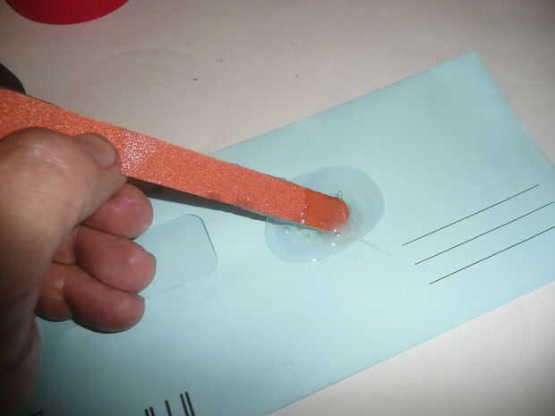 2. mezclar las dos partes con los desechables mezcla palillo, en mi caso una placa de esmeril de una inmobiliaria local.