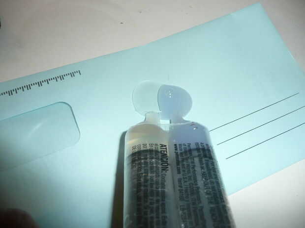 1. Ponga cantidades iguales de las dos partes en desechables Bloc de mezcla. Como pueden ver usé ensobrado viejo.