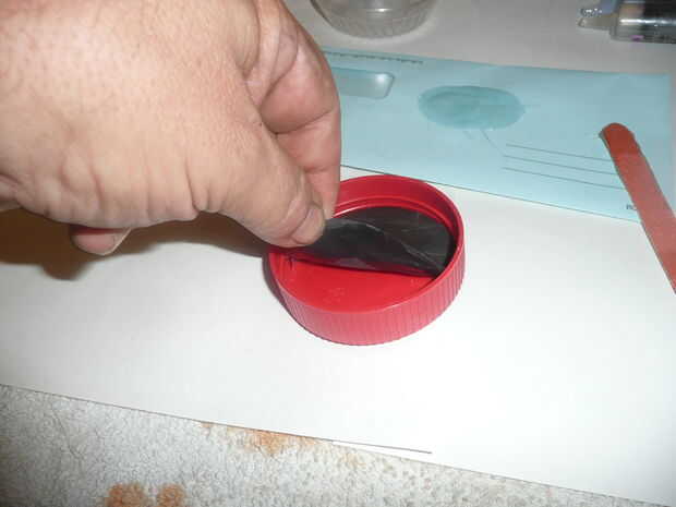 Jodido el frasco a la tapa lo suficiente como para mantener el círculo en su lugar mientras se seca. No apriete duro, esto exprime la mezcla epoxi delgada y puede que no obtenga una buena adhesión a lo largo del borde.