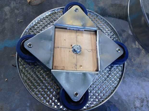 4. Hilo de rosca en las tuercas de sus. Yo uso dos, uno para ir cómodamente contra las arandelas (no apretado, que necesita para permitir que el perno gire!), luego otro apretado contra él. Luego afloje la tuerca primera (uno en la parte inferior de la base de pan de torta), que aprieta contra la tuerca superior. Hay un nombre para esta técnica, pero maldecido si mal recuerdo. Si tuvieras una tuerca, esto sería un buen lugar para utilizar para un aspecto más acabado y para permitir un tiempo más fácil conducir desde atrás, ya que no tiene que preocuparse por apretar las tuercas y encerrando a todo.