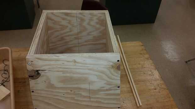 Atornillar las piezas en ángulo para hacer una caja ligeramente angulada