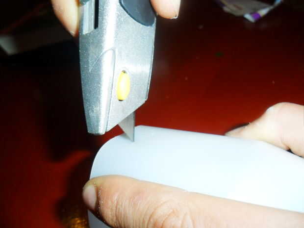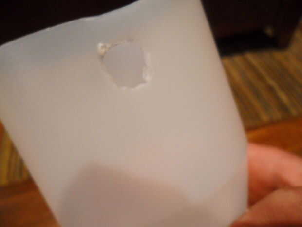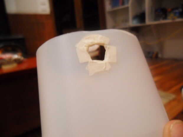 Si utilizas un vaso de plástico fino puede poner cinta en el borde del agujero para que no corte la cinta de goma. (ver foto)