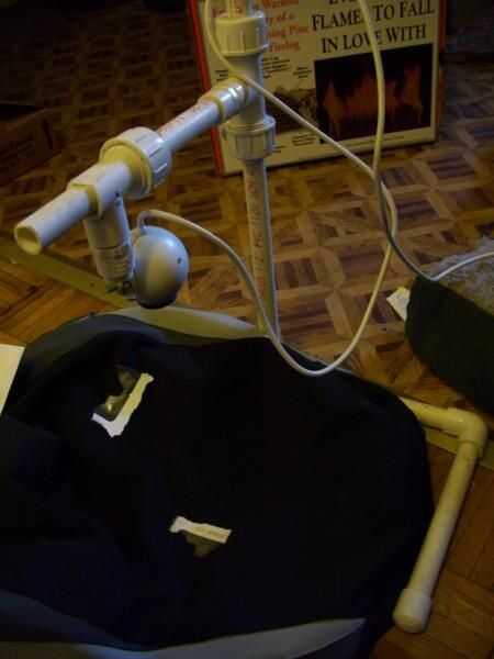 (2) conectar una webcam al ordenador de trabajo. Establecido por lo que está buscando en una superficie plana y oscura. He utilizado un marco de PVC existente que hice para la cámara. (primera imagen)