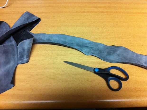 Ahora corta el tubo interno en una tira grande agradable. Se puede experimentar con diferentes anchos.