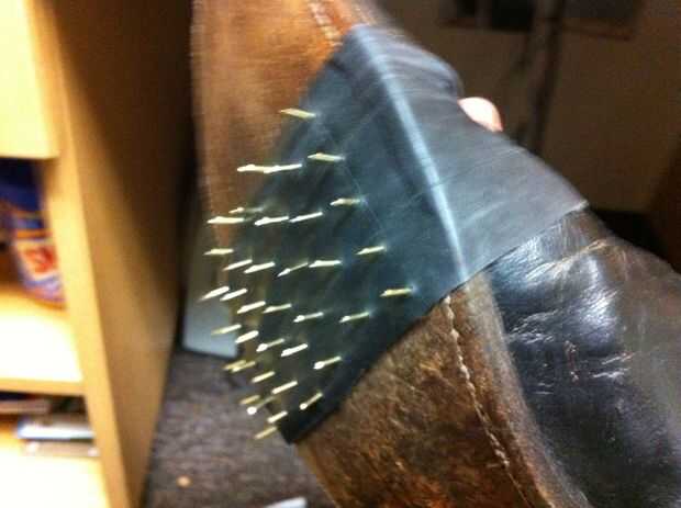 aquí es mi barato y fácil de hacer cartón casco de hierro Man(TM) que hice para menores $3. Usé cartulina (tablero de caja), papel brillante, pintura acrílica oro y un rotulador. Las herramientas son knives(paper cutters), grapas, tijeras y una aguja
