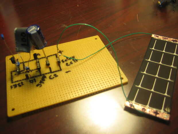 Puede utilizar diferentes versiones de la parte de 1381 por lo que esperará para diversos voltajes antes de accionar (y enviar energía al motor). Conseguir uno que se dispara con una tensión adecuada para el motor y que puede manejar el panel solar (el panel solar debe ser capaz de alimentación más la tensión que provoca en el)