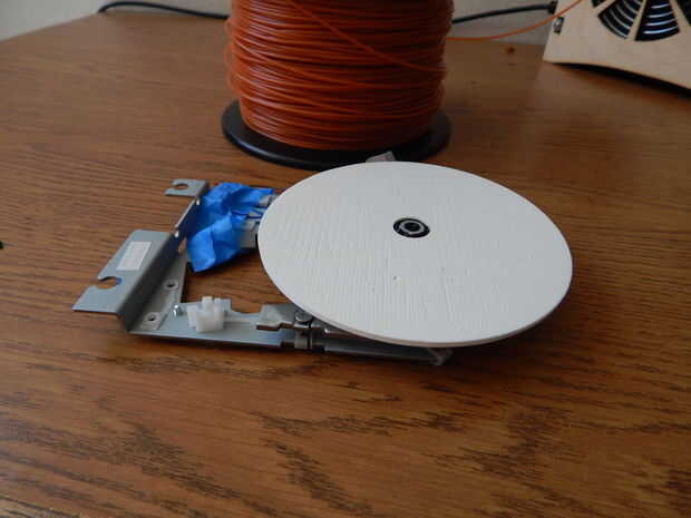No fue hasta que un amigo me dio una vieja unidad de cd muerto a separar que me di cuenta el motor que hace girar el CD tendría un gran plato universal portarrollos.
