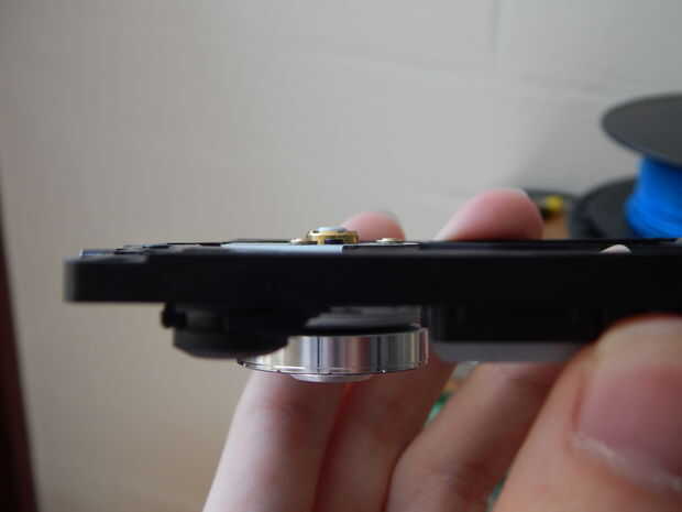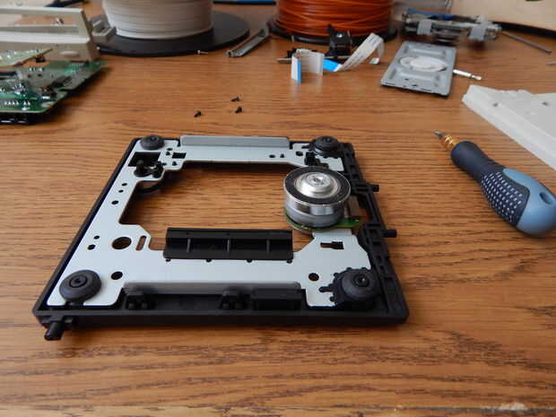 Si como mi prototipo disco ha aprovechado los agujeros hacia abajo en cada esquina (imagen 1) (engañar un poco grabó una pieza de plástico a una esquina con un agujero roscado y condujo un autorroscante tornillo en él) necesita un tornillo en cada uno de los orificios y ajuste la altura de cada uno hasta que el motor es de la tierra y encuentra a nivel.