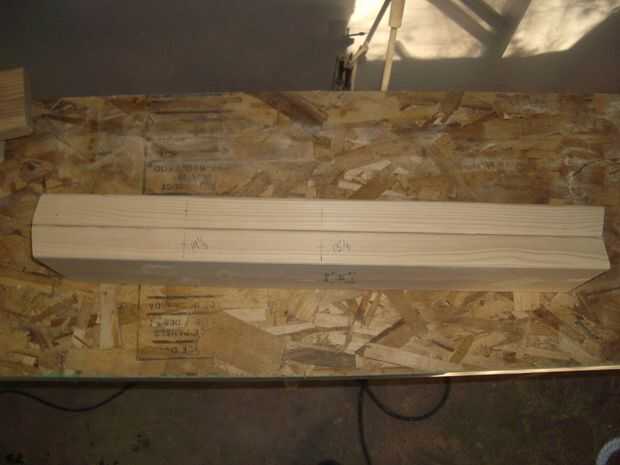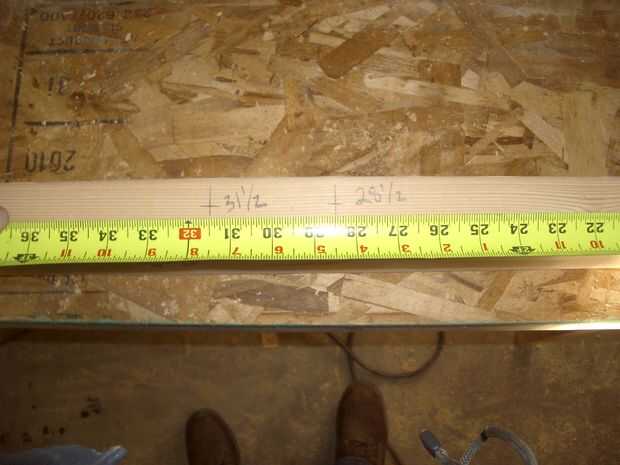 En la parte superior, borde largo de 5' 2 x 6 marca 28-1/2" y 31-1/2" de medición de punto largo. Marcar los centros y el taladro 1/2" diámetro, 1/2 agujeros profundos en esos lugares. Ver la foto 5.