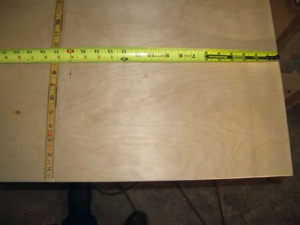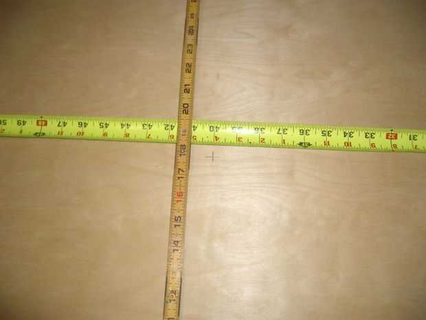 Mide 16" de los extremos de la puerta, y 7-3/4" en de los bordes, hacer marcas en las intersecciones de cuatro. Haga una marca en el centro muerto de la puerta, 1' - 6" de los bordes y 3' - 4" de los extremos, formando un quincunx. Me encanta esa palabra. Taladro 1/2" diámetro, 1/2 agujeros profundos en estos cinco lugares. Una vez más, revise las fotos.