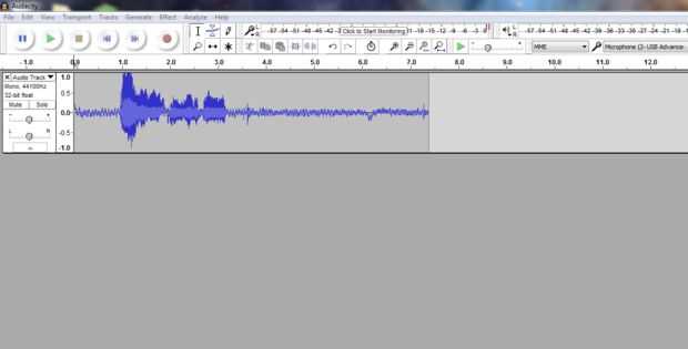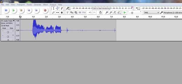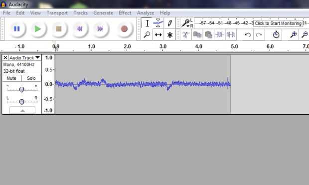 Pulse grabar y esperar unos segundos, en silencio. Detener la grabación y veremos la forma de onda. Si se ve algo como la imagen 1, en lugar de una línea plana delgada bonita, necesita hacer algún retiro del ruido. No te preocupes, es muy fácil y audacia hace todo el trabajo. En este caso, el ruido es cualquier tipo de zumbido o ruido blanco de su micrófono o su entorno. Hay dos archivos adjuntos, uno antes de eliminación de ruido y uno después. Escuchar al silencio antes de la grabación.