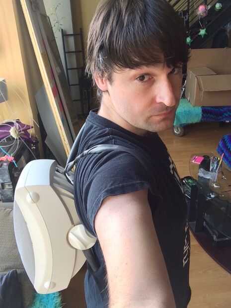 Incluso hice una correa posterior de un tubo de bicicleta caucho usado, por lo que puede ser usado como una mochila.