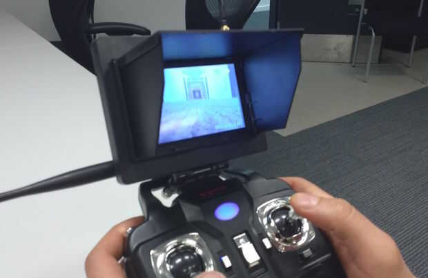- La pantalla del receptor: es una pantalla de 4,3 pulgadas generalmente, con un parasol y una antena planar. La pantalla es brillante y una calidad de imagen es buena. Se puede conectar fácilmente al controlador de Syma X5 con un par de tornillos, la configuración del conjunto es muy sólida.