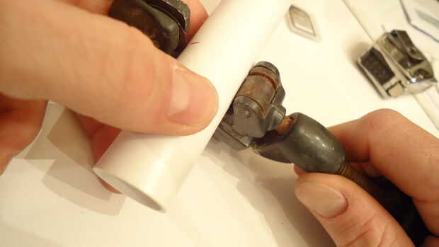 corté min lo más corta posible, pero dependiendo de cómo quieres cap final querrá hacer más. Utilicé un cortador de pipa, pero una sierra para metales trabajaría demasiado.