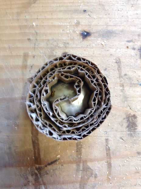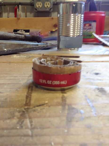 En primer lugar para hacer el calor/iniciar sesión utilicé estaño tijeras de hojalatero para cortar el fondo de la lata pop dejando aproximadamente una pulgada del 1/2 de la parte inferior hacia arriba. Entonces lo que hice fue encrespado la cartulina una espiral firmemente dentro de la can inferior, entonces puso una 1 pulgada de hilo en el centro de la cartulina. Entonces derramé cera derretida dentro del cartón y de hilo para recubrir el hilo de cera. Es mi fuente de calor/log.