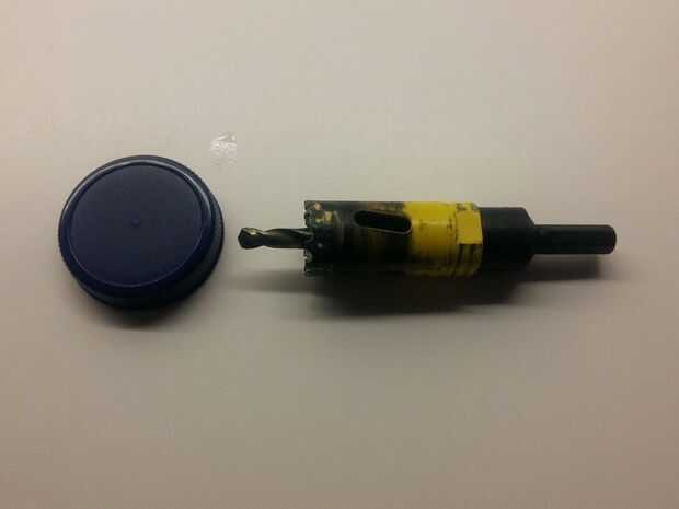 Usando el holesaw, hacer un agujero en la tapa.