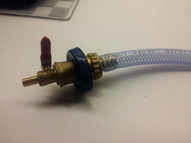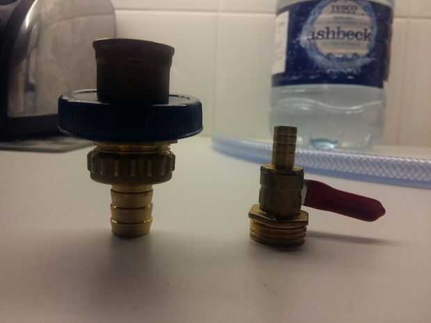 Atornille la válvula de bola en el extremo hembra de todo el conjunto (no se olvide un montón de cinta de PTFE).