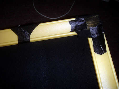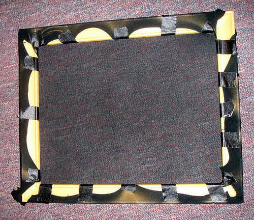 Este bit siguiente es complicado. Las medias de nylon no quiso permanecer estirado para grabarlo era un poco de un problema. La cinta en el cuadro no es cinta de pato, aunque deseo que era. Algo realmente pegajosa será mejor. Después de la lucha libre un poco, me alojé.