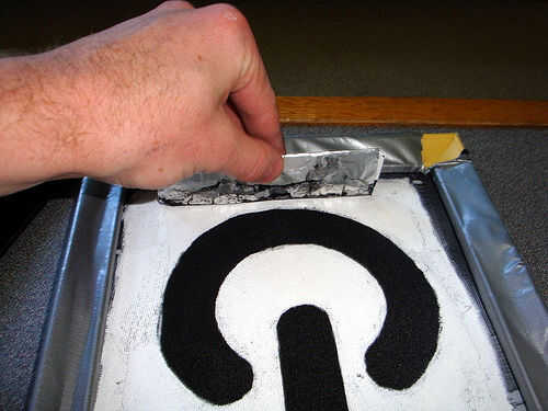 Para realmente la camiseta de la pantalla, sacar algunos tinta en una línea en la parte superior de la pantalla. A continuación, utilizando algún tipo de rasero (doblado papel y papel de aluminio?) extiende la tinta sobre toda la cosa. No tengo consejos para cómo para asegurarse de que tienes suficiente, ya que depende de la pantalla, la tinta y todo eso. Yo diría que utilizando un color diferente al color de la pantalla puede ser útil por lo que puede decir lo que has cubierto ya.