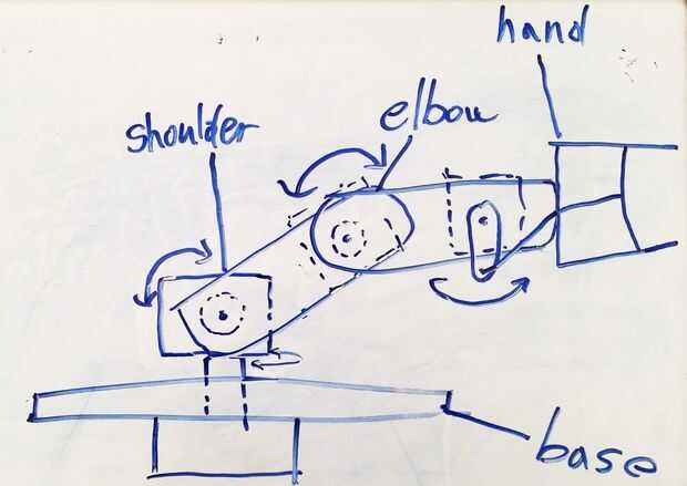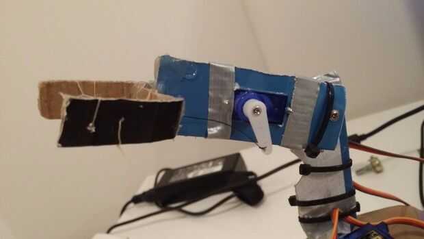 El dibujo muestra el principio. Me explico cómo funciona el brazo. Ambos lados del brazo están conectados a un hilo delgado. El centro de la rosca se conecta al servo del brazo. El servo tira la cuerda, aprieta el brazo. Fácil! También he añadido un pequeño resorte de un bolígrafo, pero si tienes otro material más flexible, puede utilizar.
