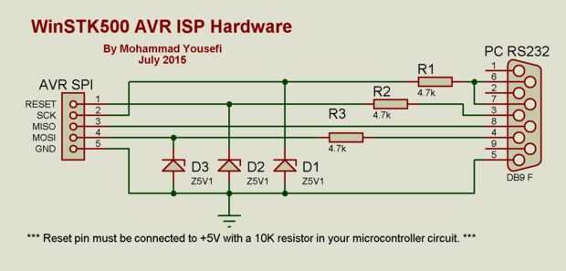 Tenga en cuenta que el pin RESET del microcontrolador debe conectarse a + 5V a través de un resistor de 10K en tu circuito.