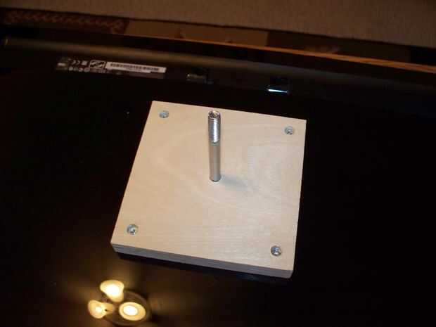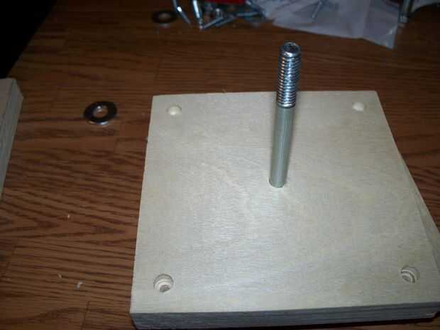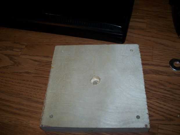 Una vez que había perforado los 4 agujeros de montaje, después había perforado el agujero central y martilló un perno largo a través del orificio.