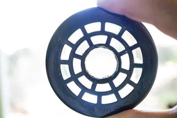 El botón no funciona demasiado bien con un montón de plástico de la manera, así que el centro de un tapón. Arrojó al suelo un dinero extra o dos para este tapón de desagüe, pensando en los anillos me ahorraría tiempo noqueando a un agujero. Resultó ser el plástico más grueso hizo bastante poco elegante a la sierra y las costillas se consiguieron de la manera más que ayudaron. La próxima vez sólo quisiera conseguir un tapón plano llano (son generalmente de color blanco) y perfore el centro con una broca de pala. Recuerde que los niños, piloto primero los orificios.