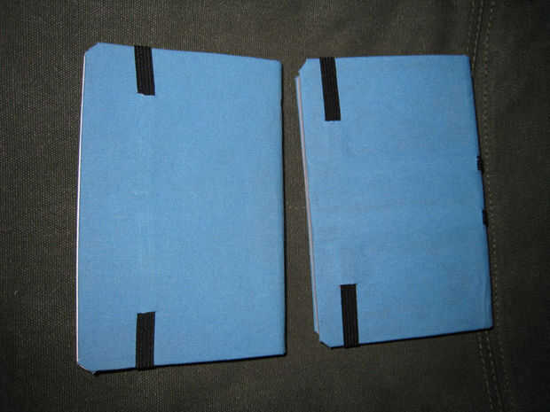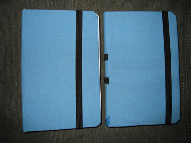 -hacer agujeros para el soporte de pluma. Asegúrese de hacer los agujeros a la misma altura de la misma banda de elástico. 2 bandas elásticas funcionan mejor conmigo, pero prefiere empezar con sólo uno, o sin un sostenedor de la pluma (es un ejemplo de la misma notebook sin un soporte en las siguientes imágenes.