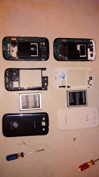 Después de hacer lo mismo para el segundo teléfono, manteniendo las piezas separadas, comenzar el proceso de inversión para montar.