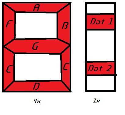 Bueno, ahora tenemos piezas, por lo que podemos empezar. Aquí está la foto, cómo hacer segmentos de marco y punto. Zonas rojas son lugares donde ponemos los leds. Ya he construido esto para arriba, pero creo que tengo que construir uno más para mostrarle cómo hacer esto.