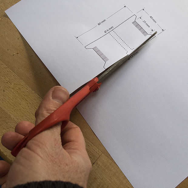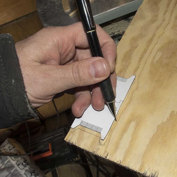 Cuando haya determinado el tamaño exacto, dibujar la plantilla en la madera contrachapada.